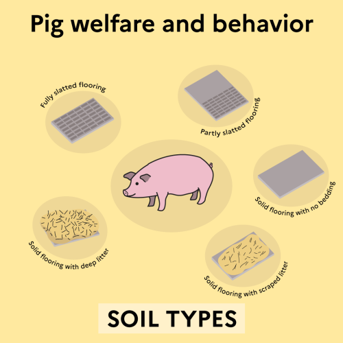 - The welfare of pigs increases according to the type of flooring, following a gradient (fully slatted flooring < party slatted flooring < solid flooring < deep litter), which is associated with the amount of straw provided.