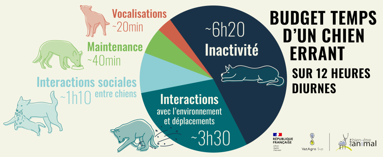 La répartition temporelle de ces besoins a été étudiée chez les chiens errants[9] et est présentée dans le diagramme ci-dessous.